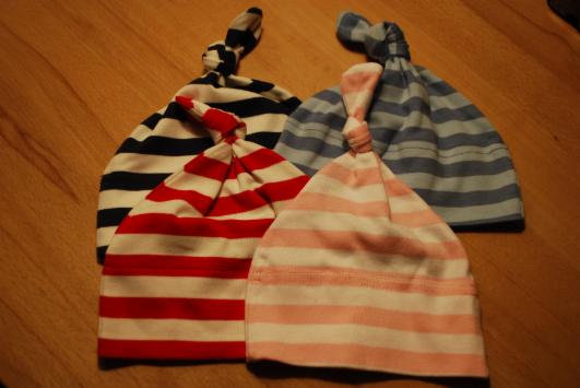 Hier findet man verschiedene Babymützen in Einheitsgröße.
